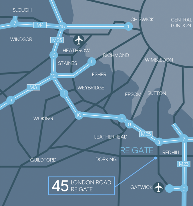 at Reigate Hill providing easy access to the national motorway network. Gatwick