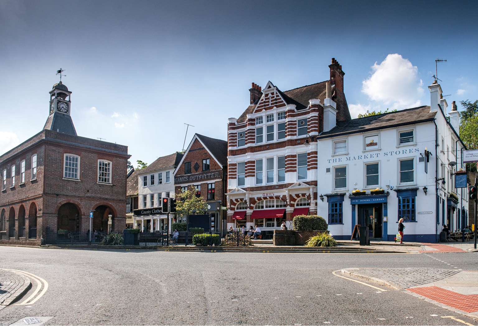 Framed by the backdrop of the Surrey Hlls, Reigate is