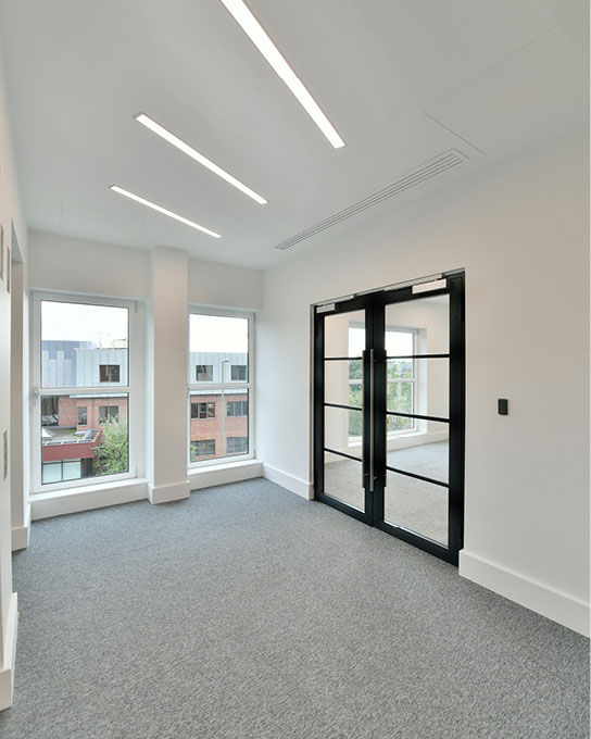 45 London Road provides highly sustainable, flexible and energy efficient office accommodation with new M&E throughout, achieving an EPC rating of B and SKA Gold standard for environmental assessment. The building also benefits from a newly remodelled and re-landscaped arrival experience and reception area.